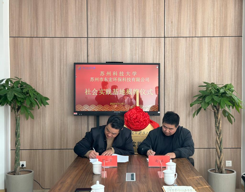学院党委副书记任云高、学工办主任陈一重及毕业班辅导员前往校友企业苏州东宏环保科技有限公司参观交流,与东宏环保公司签订了就创业基地合作协议及共建大学生社会实践基地协议,并举行了揭牌仪式。