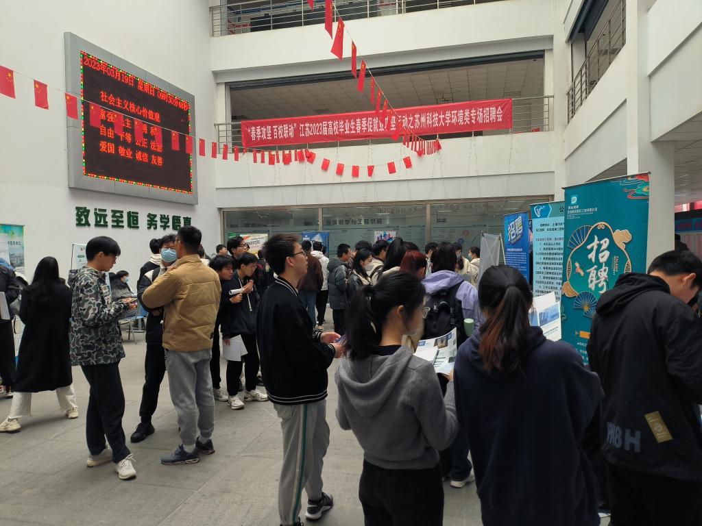 学院专场招聘会共吸引中建安装集团有限公司、苏州宏宇环境科技股份有限公司、苏州苏净环保工程有限公司等25家优质企业前来,百余名毕业参加本次招聘会。毕业生直接与用人单位面对面交流,精准匹配个人意向,提高应聘效率。