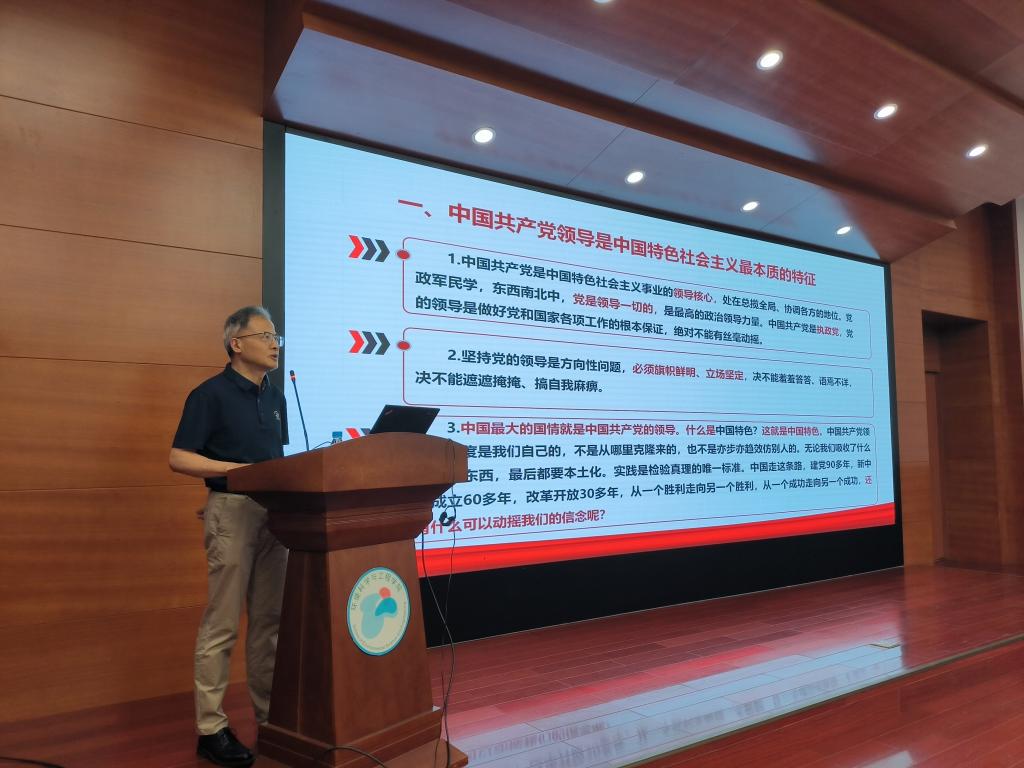 学院党委积极组织开展学习贯彻习近平新时代中国特色社会主义思想主题教育。5月31日,院党委书记费忠民为全体教职工讲授了题为《坚持和加强党的全面领导》的专题党课。