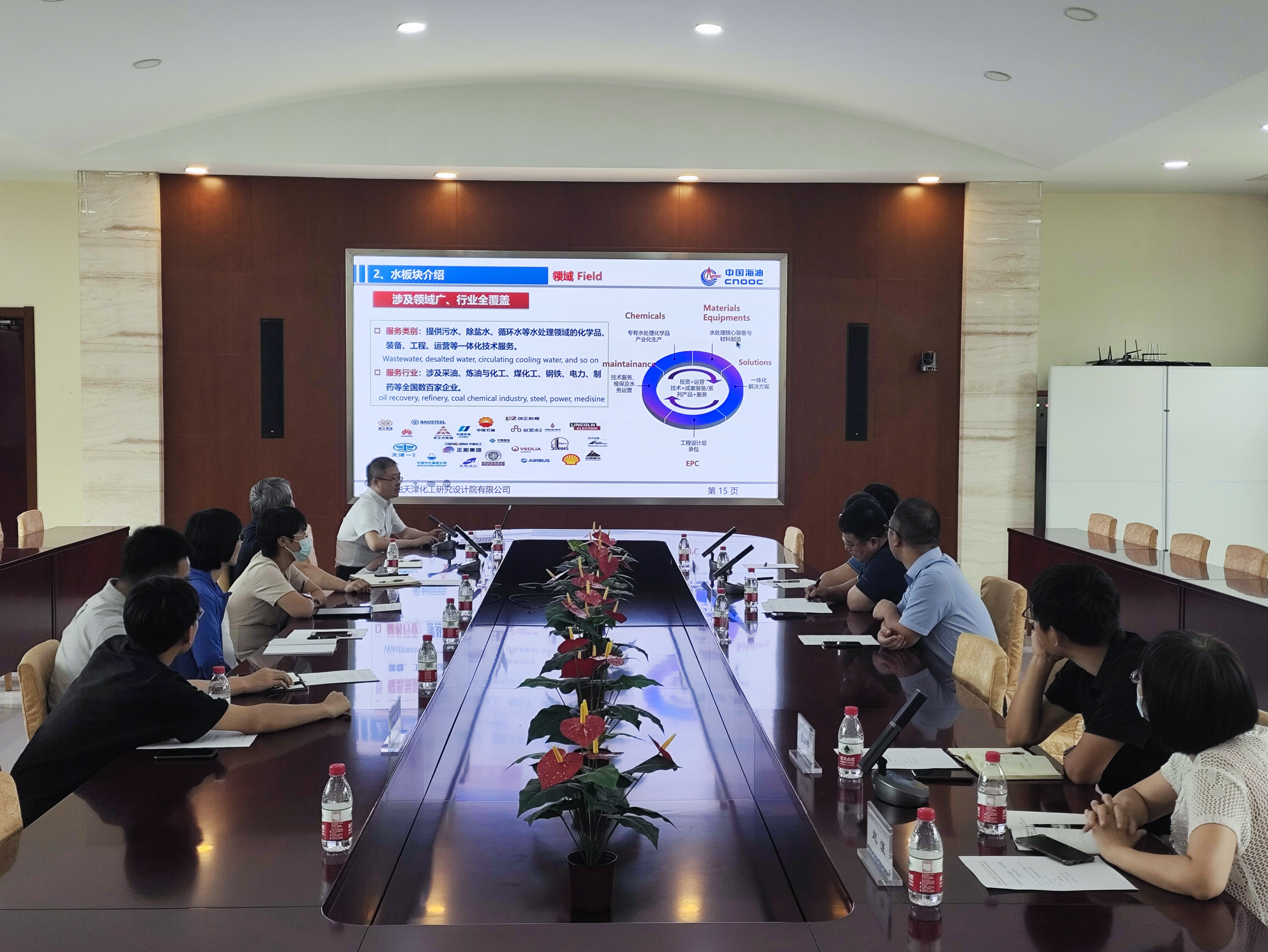 学院院长李大鹏率队赴中海油天津化工研究设计院交流。中海油天津化工研究设计院科技发展部经理周立山,水处理首席工程师、科研中心经理谢陈鑫及国家工业水处理工程技术研究中心相关负责人参加交流会。