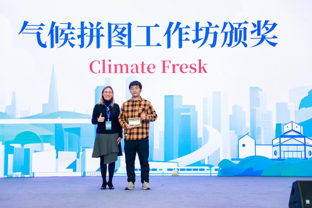 学生共完成5件拼图作品,并在大会展厅陈列展览。其中,给排水科学与工程专业21级冯缘昌作为优秀学生代表接受“气候拼图”中国北部代理人 Hortense Hallé-Yang的颁奖并在大会闭幕式发表感言,充分展现了环境学子自信昂扬的精神面貌、丰富扎实的知识储备与关心气候的社会意识。