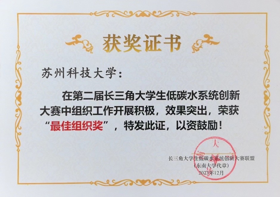 在东南大学九龙湖校区举办的第二届长三角大学生低碳水系统创新大赛中取得了优异成绩,此次大赛由东南大学、同济大学和浙江大学共同主办,吸引了来自长三角地区的众多优秀学子参与。