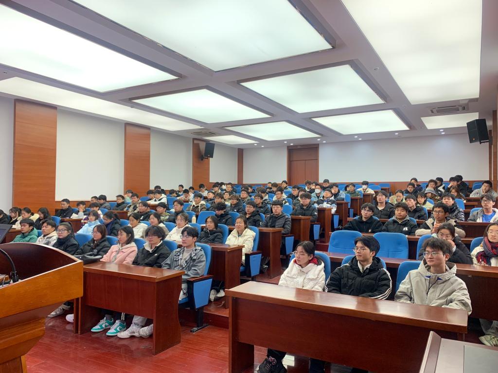 费忠民从“一带一路”倡议的提出与蓝图擘画、“一带一路”倡议十年来取得的丰硕成果、新征程上着力推动“一带一路”高质量发展这三个方面展开,介绍了当前国内外在经济、政治、文化等方面的形势政策以及近年来我国在高质量发展阶段取得的重大成果。李大鹏从“百年未有之大变局”出发,向同学们介绍了当前国际形势,总结了我国面对危机与挑战时,在危机中育新机、于变局中开新局的一系列举措,展现了我国积极承担促进“一带一路”沿线国家与自身的经济发展、推动构建人类命运共同体的大国担当与中国智慧。