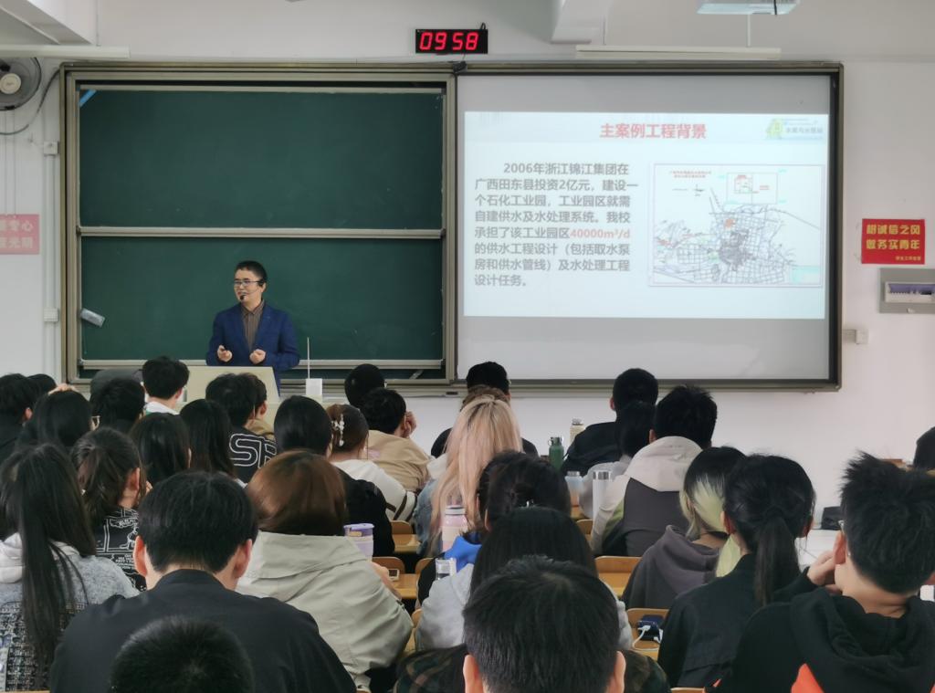 给排水科学与工程系系主任郭永福教授、任课教师杨晶晶及给排水专业21级本科生共100余人参加了讲座。
