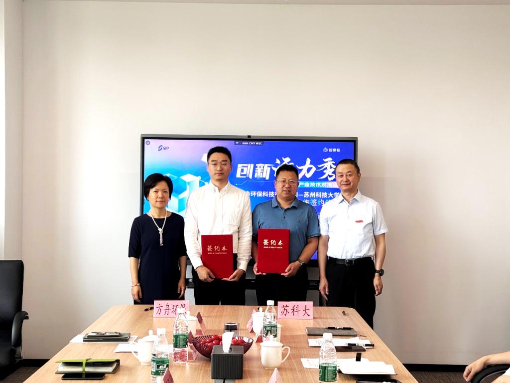 吴小庆介绍了苏州工业园区企业发展服务中心基本情况,并表示将为校企深度合作提供全方位、深入、优质的服务。李勇介绍了学校的办学历史、师资队伍、人才培养、科学研究及地方服务等情况,希望进一步加强校企联动,推动大学生高质量就业和服务地方发展。苏州方舟环保科技有限公司总经理陈振国介绍了公司发展历史、业务内容、人才需求等情况,对学校的人才培养工作、科技创新等给予了充分肯定。