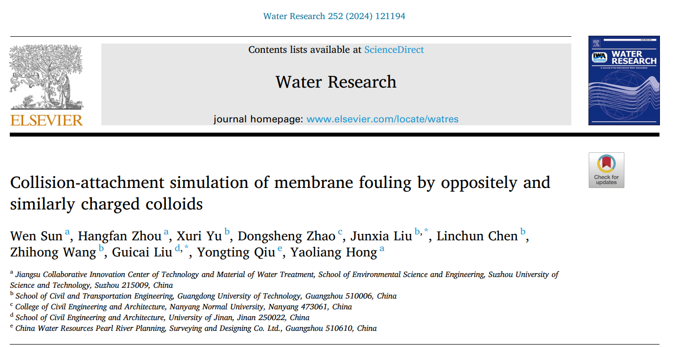学院孙雯博士在环境类顶级学术期刊《Water Research》上发表了题为“Collision-attachment simulation of membrane fouling by oppositely and similarly charged colloids”的研究论文。探花av