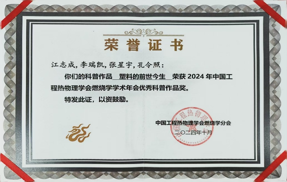 学院江志成、李瑞凯和张星宇等三名硕士研究生独立制作完成的视频科普作品《塑料的前世今生》在59个参赛作品中脱颖而出,与清华大学、中国科学技术大学等其他8支队伍一道获得优秀科普作品奖。