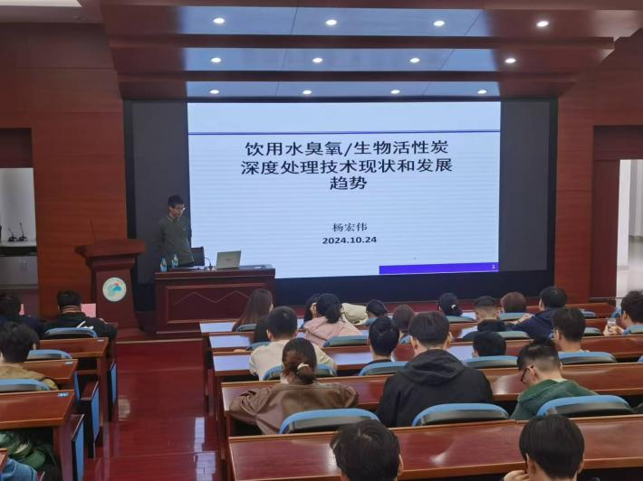 学院二楼报告厅,为学院师生做了一场题为“饮用水臭氧/生物活性炭深度处理技术现状和发展趋势”的学术报告。报告会由环境学院副院长潘杨主持,相关专业师生参加了本次报告。