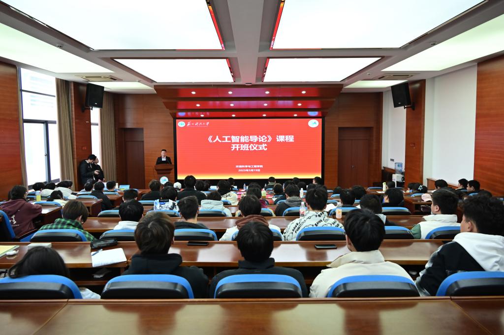 温波副校长在致辞中表示,环境学院《人工智能导论》课程的开设充分体现了学院主动拥抱人工智能、赋能人才培养的坚定选择,也展现了学校响应国家人工智能赋能高等教育号召,深化教育教学改革的积极探索。希望环境学院持续加强人工智能与环境学科的交叉融合,为国家生态文明建设培养更多优秀人才。希望同学们锚定国家需求,勇攀技术高峰;深化学科交叉,培育创新思维;筑牢价值基座,引领技术向善,努力成为国家生态文明建设的生力军。