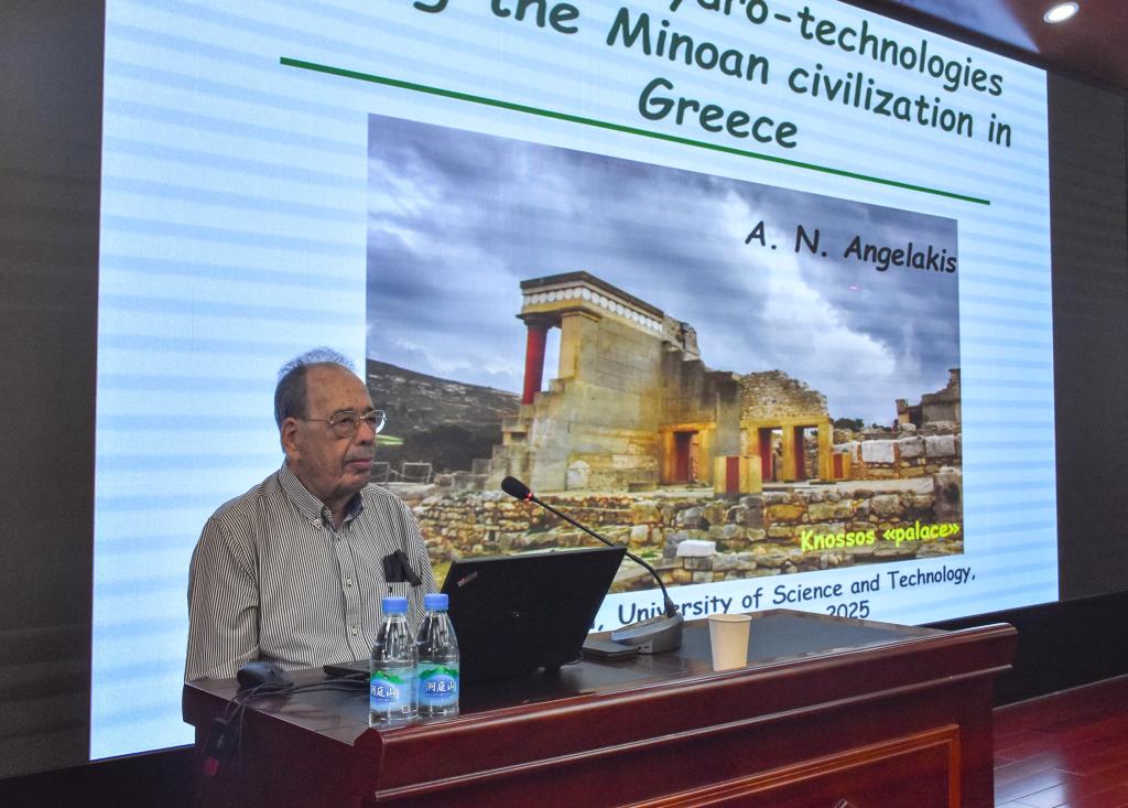Andreas N Angelakis院士期待未来能开展师生交流与科研合作,加强教育合作与人文交流。随后,他为师生作题为:Prehistoric hydrotechnologies during the Minoan civilization 4.5 millenials ago的学术报告,学院百余名师生聆听了报告,并进行深入地交流与讨论。