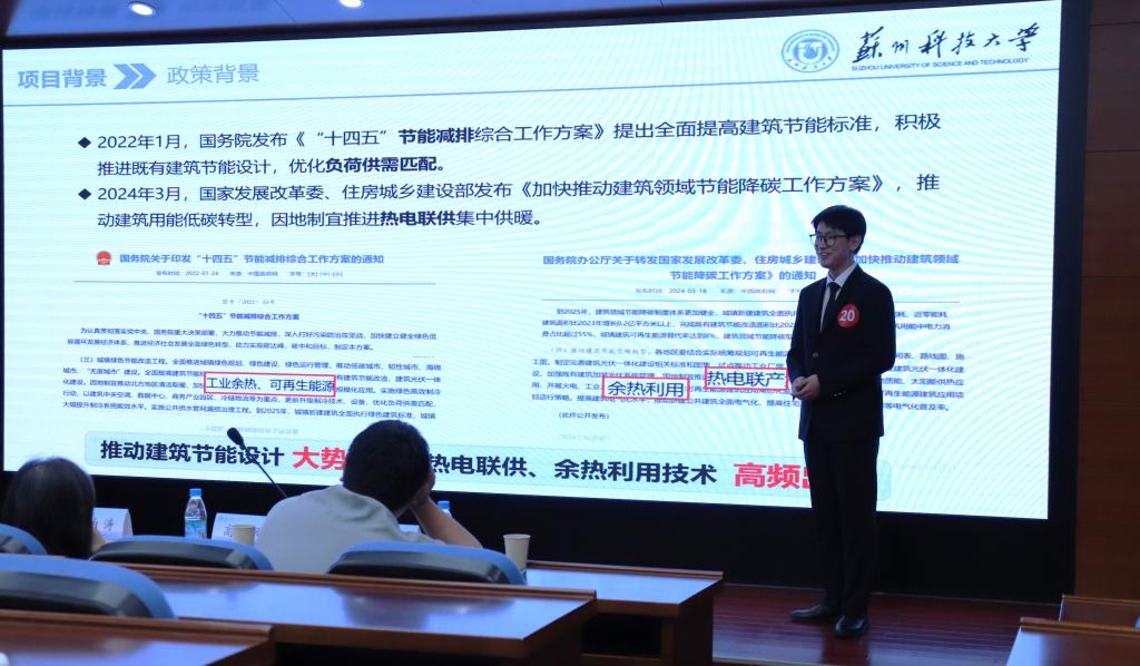 校教务处副处长王军代表学校教务处作开场致辞。他首先对莅临现场的评审专家、参赛师生表示热烈欢迎。他指出,全国大学生节能减排竞赛作为教育部重点支持的赛事,不仅是展现大学生创新思维与实践能力的重要舞台,更是推动绿色低碳技术革新、助力实现“双碳”目标的关键一环。希望学生们能够将课堂所学理论知识与实际应用紧密结合,探索节能减排的新方法、新技术,为解决当前环境和能源问题贡献力量。