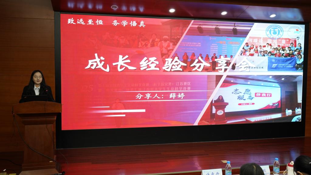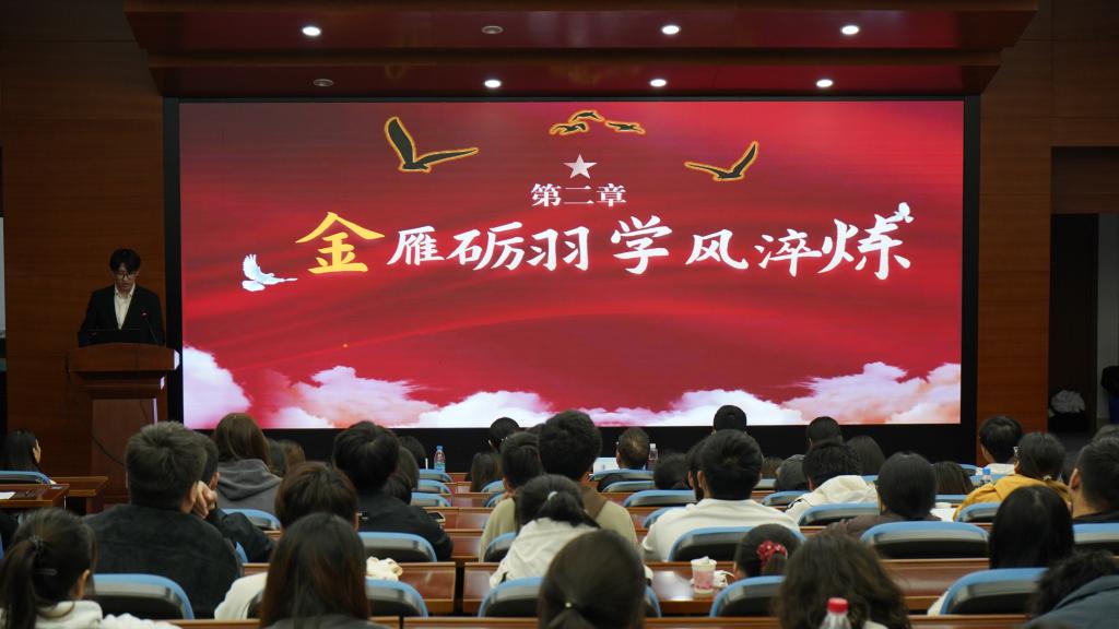 顾银君介绍学院学风建设推进举措,并发布促学风“三大行动“计划。潘杨和陈琰共同为环境学院学生学业发展中心揭牌。会上,为学生学业发展中心骨干成员和朋辈讲师颁发聘书。三名“朋辈讲师”依次分享了他们在学业规划、学科竞赛、硕士推免以及班级建设等方面的成长历程,充分展现了环境学院学子的风采。潘杨表示,学风建设促进月启动与学生学业发展中心成立,是学院优化学业育人服务的关键举措,学院将从学科发展、学业规划到个人成长,为学生提供全方位的支持,引导学生明确发展方向,破解学业难题,深入推进学院的学风建设,助力学生成长成才。