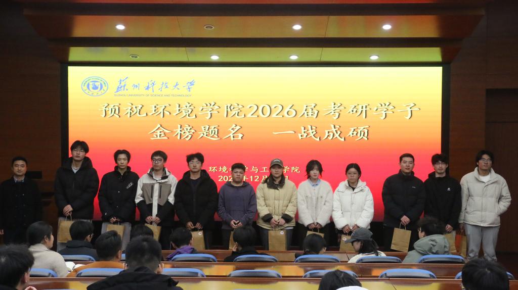 学院在环境楼二楼报告厅举行2026届毕业生考研送温暖活动。学院院长李大鹏、党委副书记顾银君、副院长钱飞跃、全体毕业班辅导员出席会议,2026届考研学子代表参会。