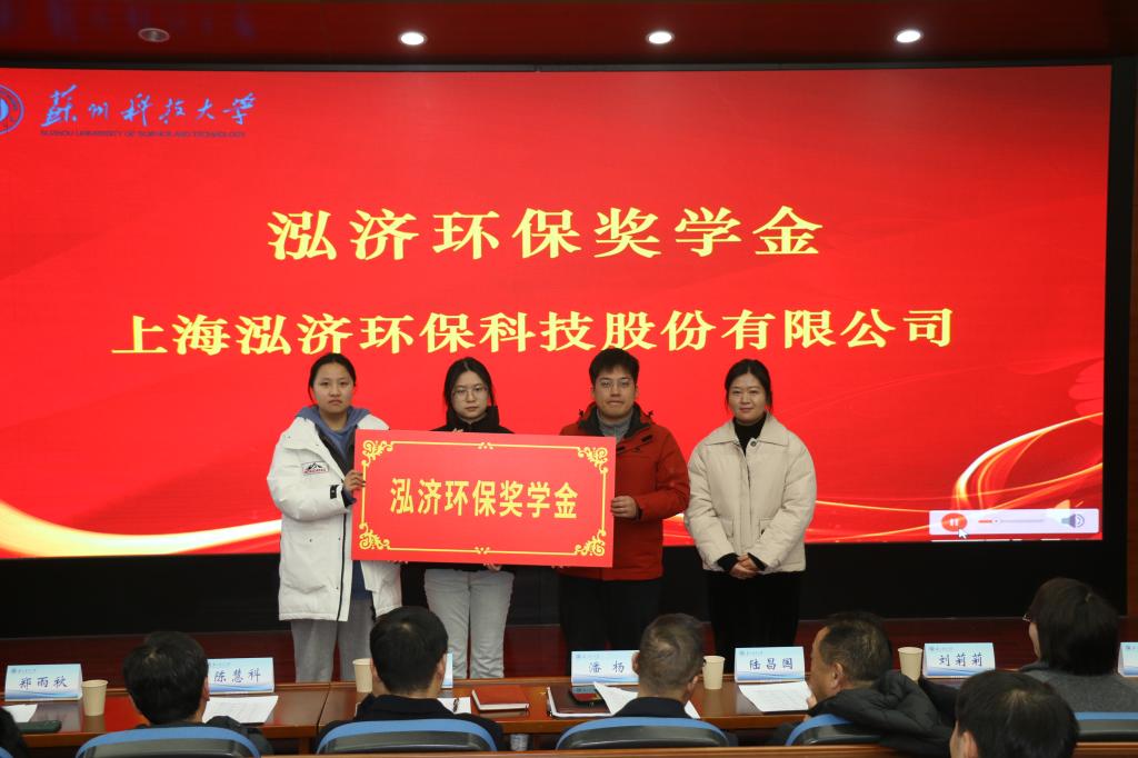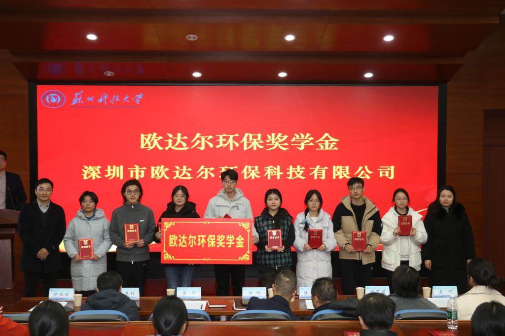 学院举办2025年度企业奖助学金颁奖仪式。苏州零碳时代科技有限公司董事长陆昌国,苏州市东方环境工程有限公司副总经理陈慧科,苏州格力美特实验室科技发展有限公司财务总监刘莉莉,深圳市欧达尔环保科技有限公司行政人事部门郑雨秋,学校学生工作处副处长崔炜,学生工作处学生资助管理中心主任王可,环境学院党委书记潘杨,学院党委副书记顾银君,学院副院长钱飞跃和百余名学生代表出席了活动。