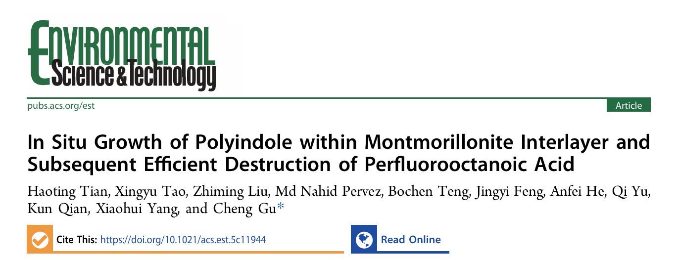 学院田浩廷副教授的最新研究成果刊登在环境类顶级学术期刊《Environmental Science & Technology》上,研究成果题目为“In Situ Growth of Polyindole within Montmorillonite Interlayer and Subsequent Efficient Destruction of Perfluorooctanoic Acid”。 探花av