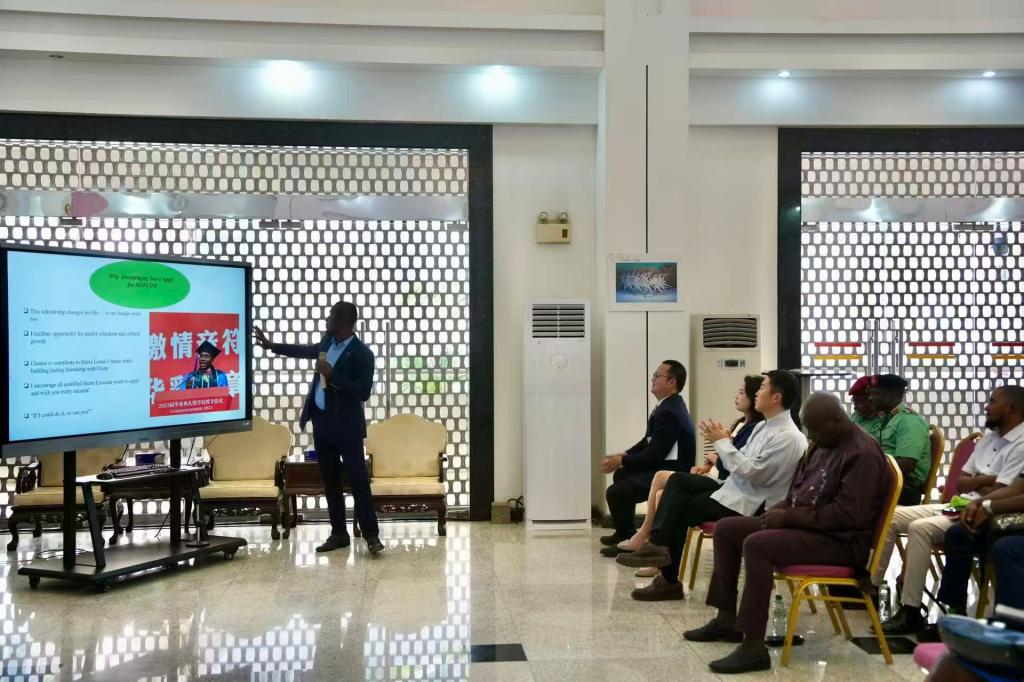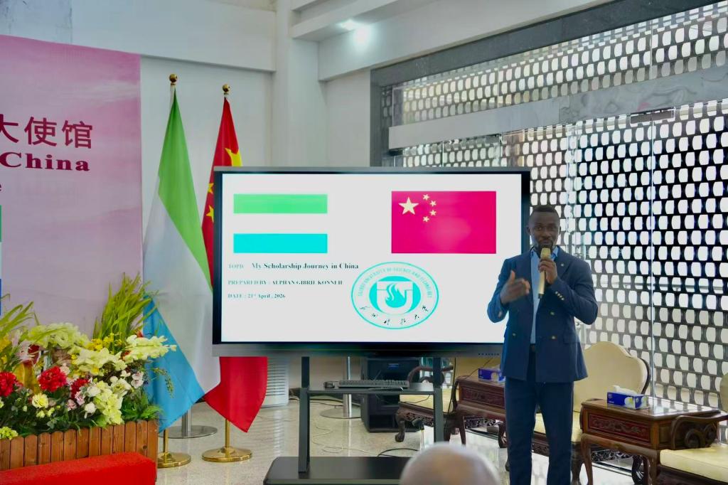 学院2023届环境工程专业国际硕士毕业生、原班长Alphan Gibril Konneh受邀前往中国驻外使馆,面向2026年度中国政府商务部奖学金(MOFCOM Scholarship)申请人开展交流分享。
