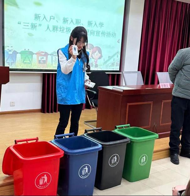 近日,在金阊街道三元四村社区,姑苏区垃圾分类志愿者团队“小苏”组织8个街道的新入职、新入户、新入学的三新人群共计65人,开展了垃圾分类靶向宣传活动。环境学院志愿者作为“新入学”群体代表参与了本次活动。