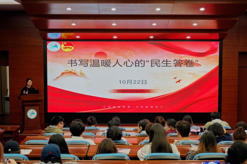 学院涓流青年学习社于环境学院报告厅开展“书写温暖人心的民生答卷”主题学习会,环境学院团委副书记赵晨曦、学习社全体成员及学生会全体成员参加。