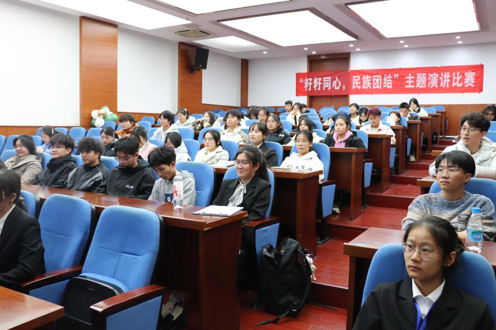 学院团委于11月29日在环境楼报告厅举办“民族团结,籽籽同心”主题演讲比赛。本次比赛邀请乐仪思辨社社长陈海啸、校社团联合会社团管理部部长邱信羽、环境学院团委副书记葛劲松等担任评委,环境学院各年级共24位选手参加。