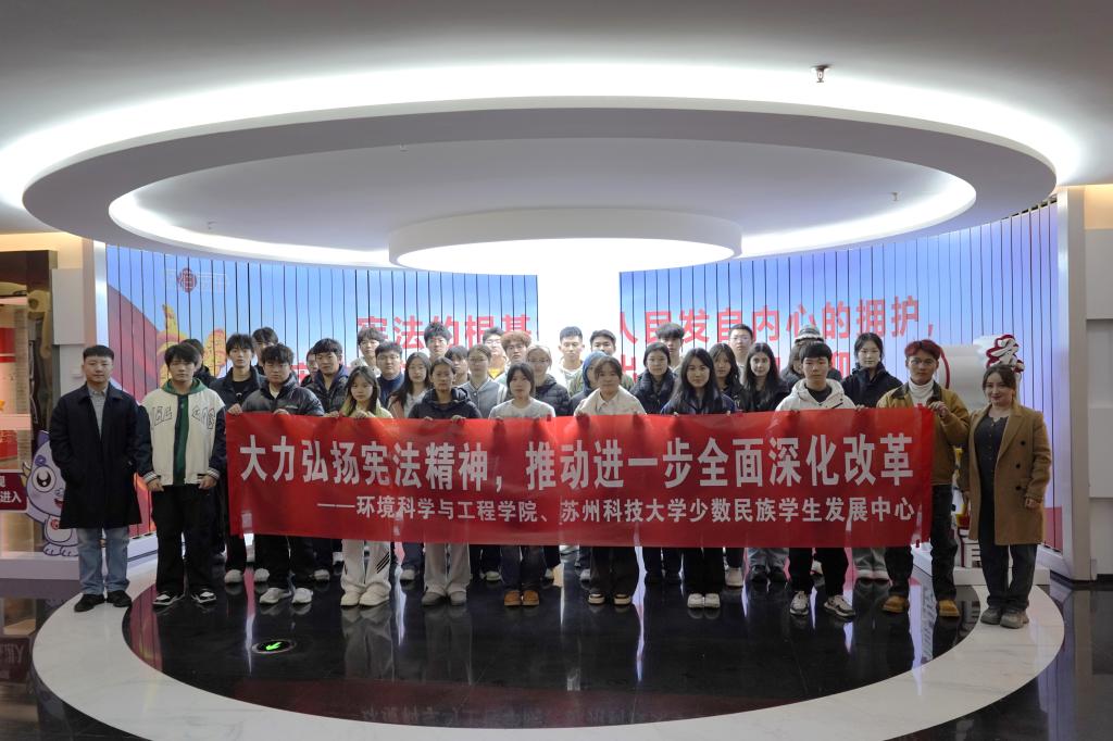 各族师生前往苏州市宪法宣传教育馆,详细了解宪法诞生、宪法演进历史及与苏州的关系,全面增强自身法治意识和法治观念,深刻领会法治苏州建设的实践成果。在民族团结进步教育主题团日活动环节,环境学院涓流青年学习社成员周金诺进行《宪法撑持民族睦,团结构筑国家兴》主题演讲,分享了宪法治理下各民族团结奋斗、繁荣发展的事迹,使各族青年在参与和体会法治文化的实践中提升对中华民族共同体的认同感。