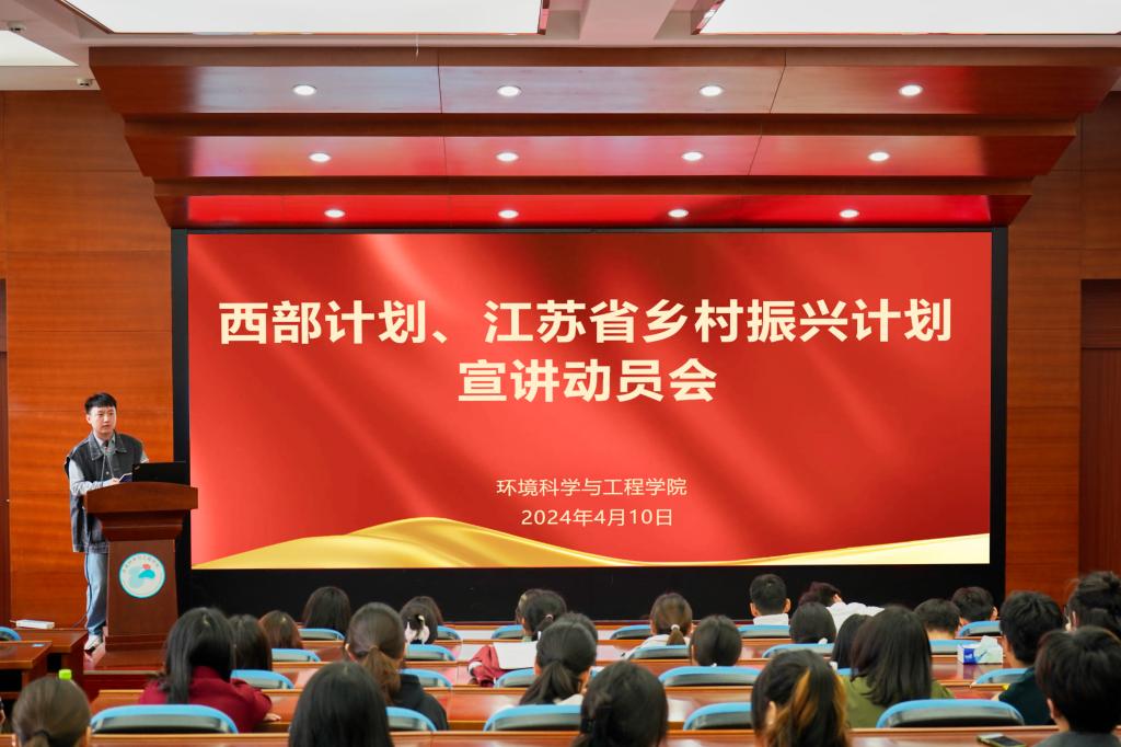 为弘扬志愿服务精神,激励和吸引大学毕业生投身基层,融入国家发展大局,积极贡献于乡村振兴的伟大事业,环境学院团委于4月10日举办了西部计划和江苏省志愿服务乡村振兴计划宣讲动员会,会议由环境学院团委副书记赵晨曦主持,2024届毕业生参加。