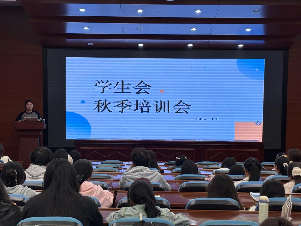 学院学生会于学院二楼报告厅成功举办秋季工作技能培训会。活动邀请了校融媒体中心影音部部长程思妤和采编部部长陆永佳,由院团委副书记王倩颖主持,学生会全体成员参加。
