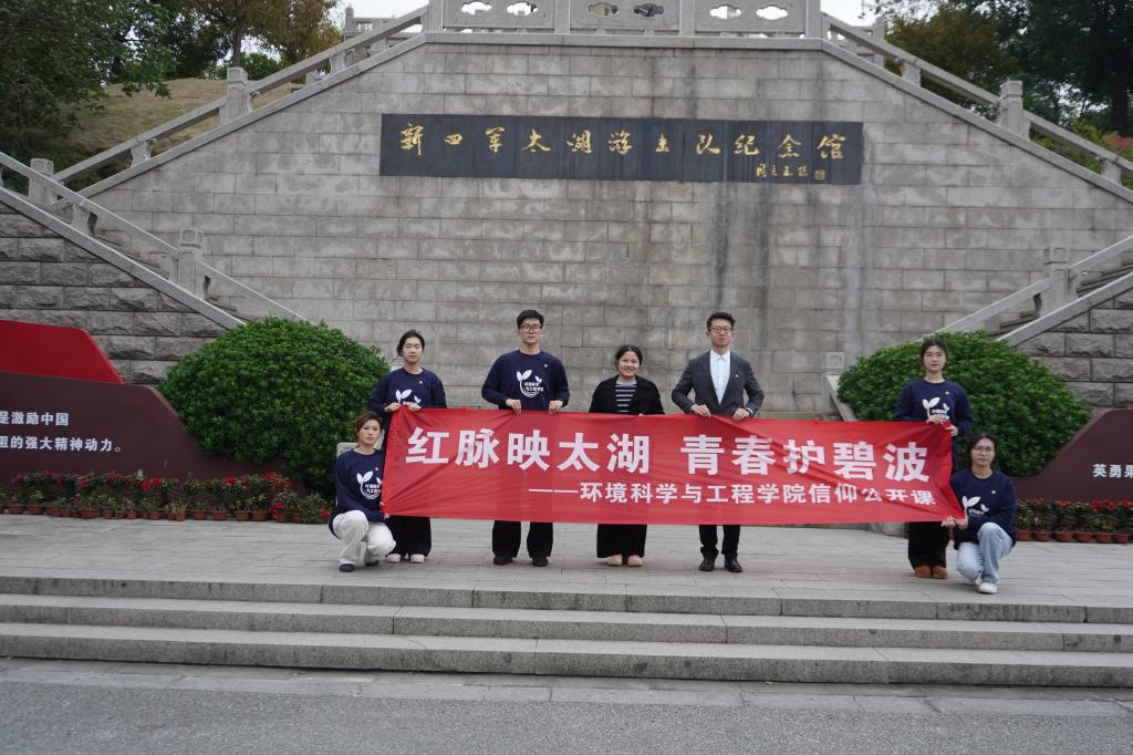 学院师生代表走进新四军太湖游击队纪念馆,开展“红脉映太湖,青春护碧波”主题信仰公开课。环境学院辅导员、环科学生党支部书记冯哲担任主讲人。