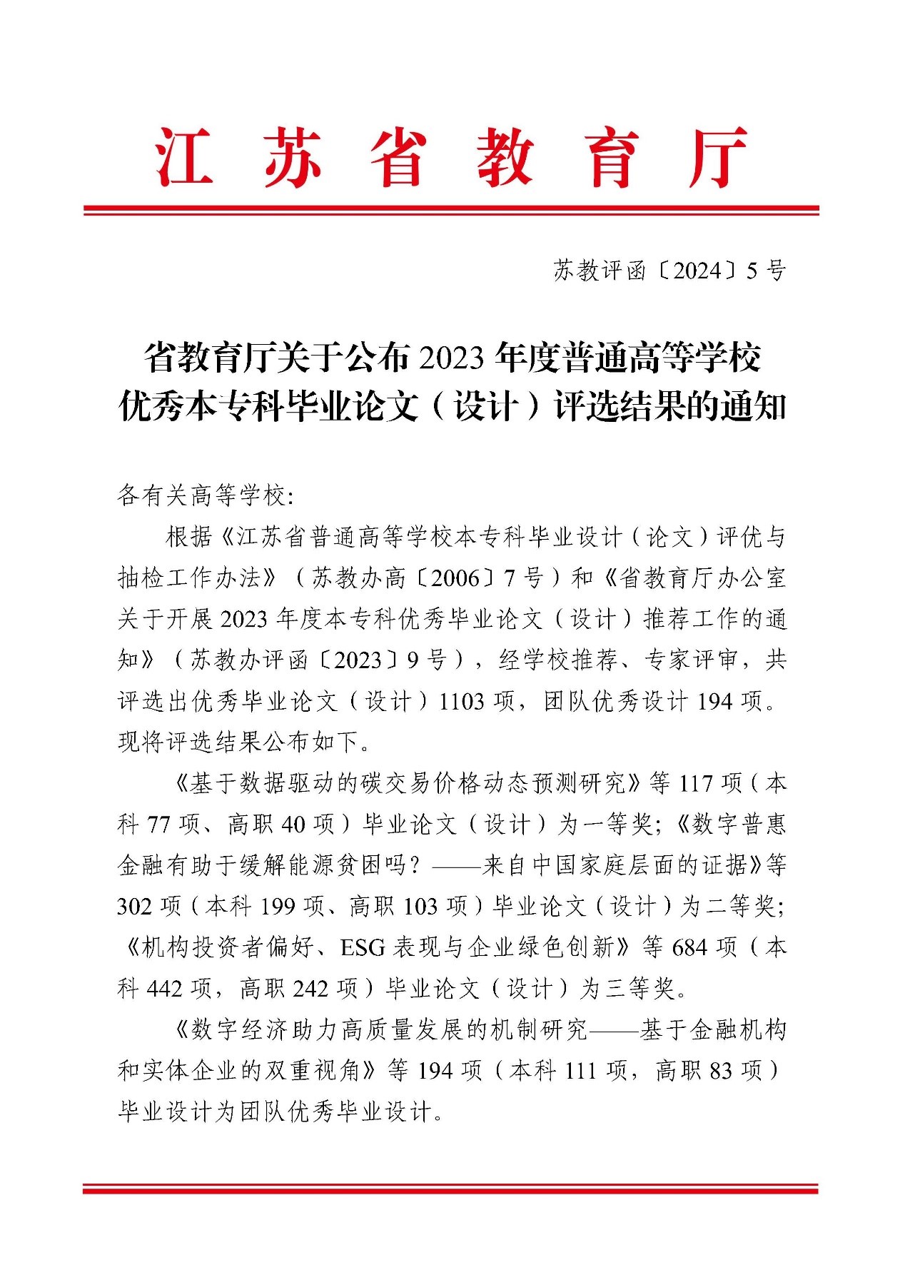 近日,江苏省省教育厅公布关于2023年度普通高等学校优秀本专科毕业论文(设计)评选结果的通知,由探花av