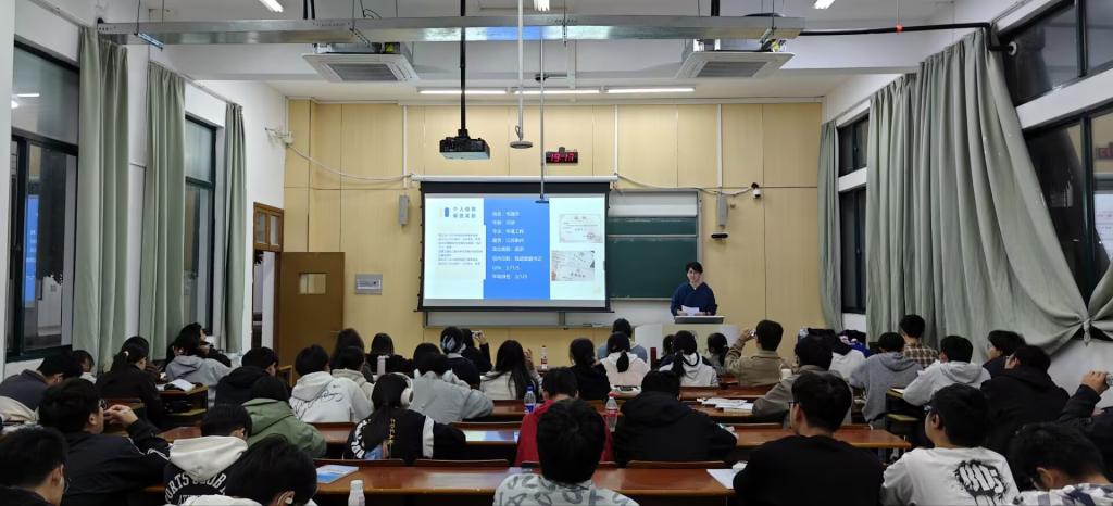 第一阶段宣讲由丁宇轩、周丽芬、束越三位国家奖学金获得同学担任主讲。周丽芬以“大学成长与探索”为核心,聚焦大二关键转型期,强调时间管理与团队协作的重要性,鼓励同学们在多元尝试中挖掘自身潜力、找准发展方向;丁宇轩围绕“推免准备”开展系统分享,结合英语六级备考、竞赛获奖及论文发表等实战经历,细致解析推免政策的核心要点、夏令营的申请策略与面试沟通技巧,提醒大家需提前对接科研资源、做好长期铺垫;束越则以“学业评价标准” 为切入点,按不同年级梳理不同阶段的学习重点,用幽默生动的表达阐释了“思考性学习”的价值,引发在场学生的强烈共鸣。