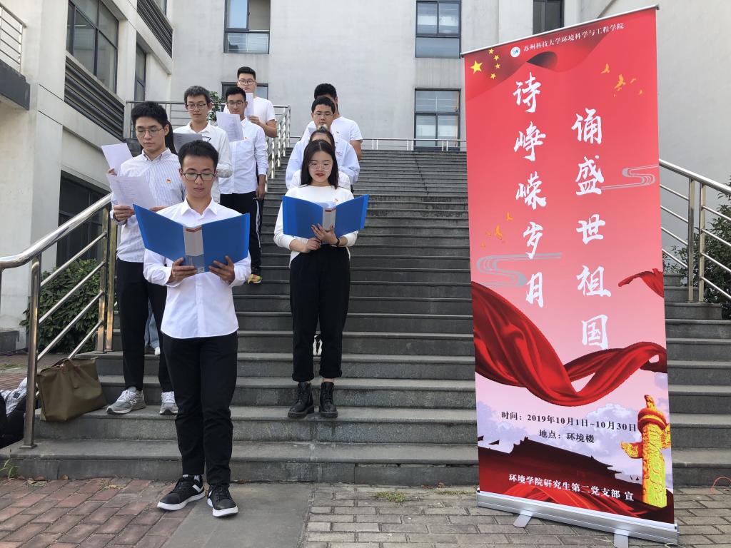 为丰富“不忘初心、牢记使命”主题教育内容和形式,弘扬爱国主义精神,激发党员的爱国热情,环境学院研究生第二支部于10月25日下午在环境楼举办了“诗峥嵘岁月,诵盛世祖国”诗文朗诵会为新中国成立70周年献礼。