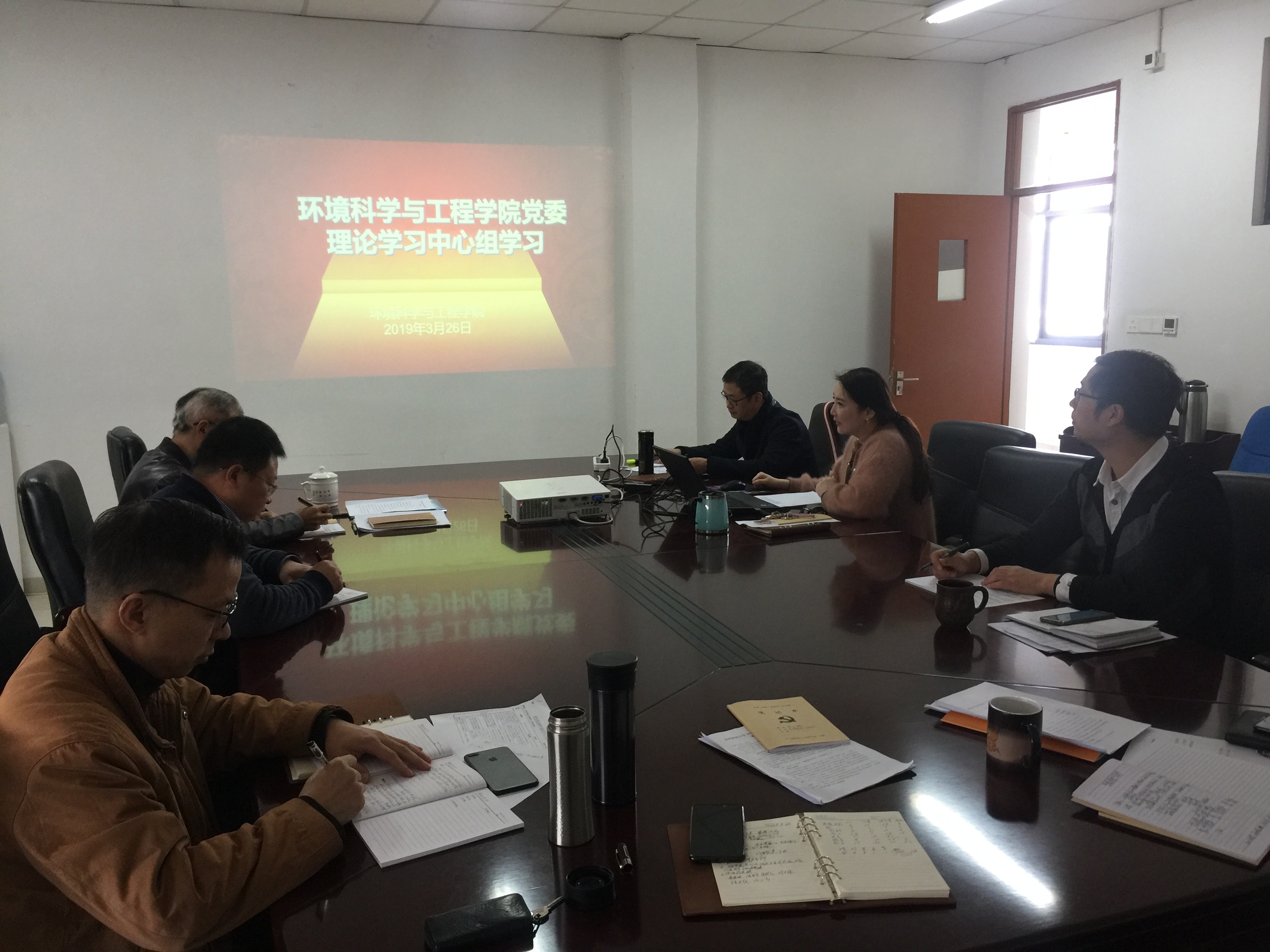 3月26日上午,环境学院党委理论学习中心组开展专题学习,一是学习习近平新时代中国特色社会主义思想科学理论体系,二是学习习近平总书记在思想政治理论课教师座谈会上的重要讲话精神。