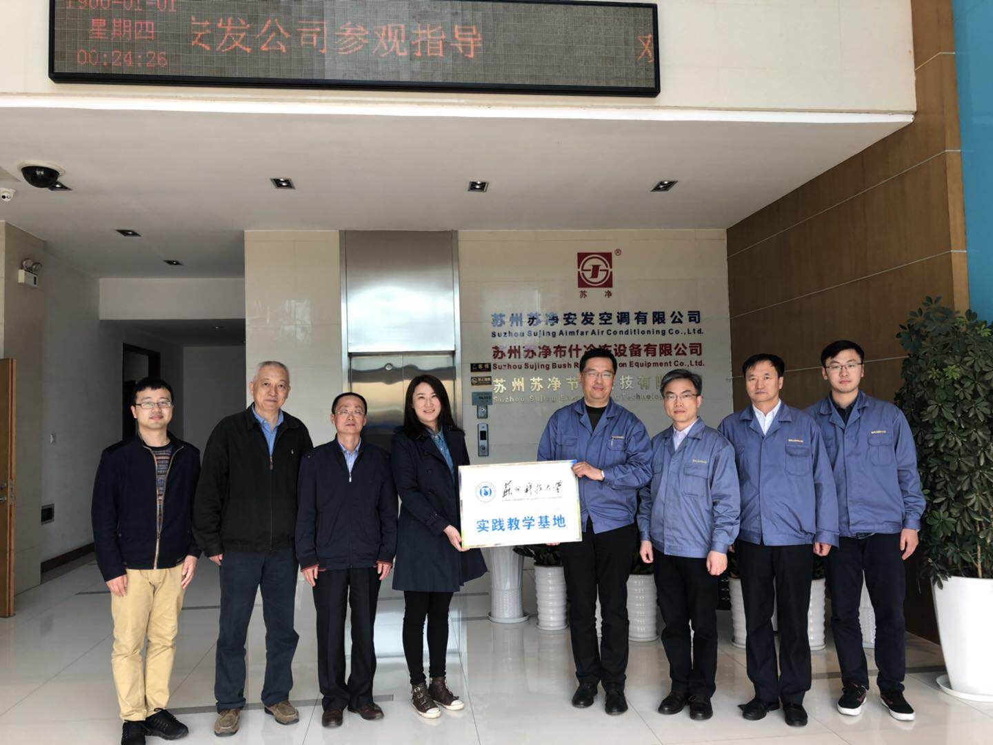 4月13日上午,环境学院与江苏苏净集团安发空调有限公司合作设立的实践教学基地举行签约揭牌仪式。出席仪式的有江苏苏净集团副总经理尤军、苏净安发空调有限公司常务副总经理吴强等,环境学院党委副书记张菡、市政系副主任孙志高教授等。