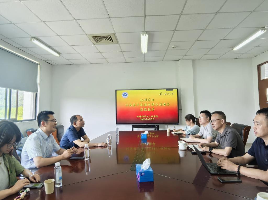 2025年6月5日,江苏吴中集团有限公司投资发展部总经理杨闪闪、吴中供水有限公司总经理程志强等一行莅临探花av ,环境学院党委书记潘杨、院长助理姜晶及相关老师参与会议,双方围绕服务“一带一路”,拓展国际合作进行了深入的交流与探讨。