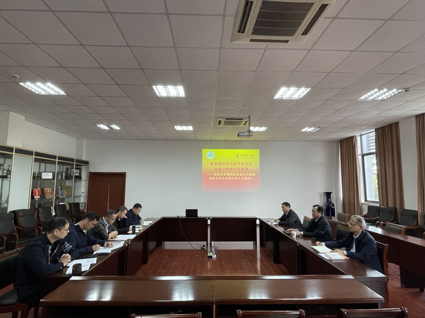 学院党委理论学习中心组专题学习会在学院二楼会议室召开。校党委书记张庆奎参加巡学旁听,会议由院党委书记费忠民主持。
