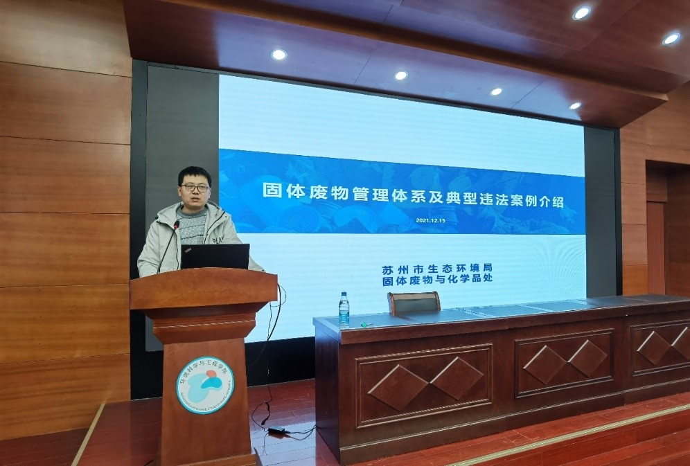 苏州市生态环境局固体废物与化学品处崔岩副处长为在校生从固废处理与资源化